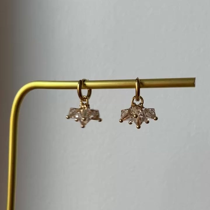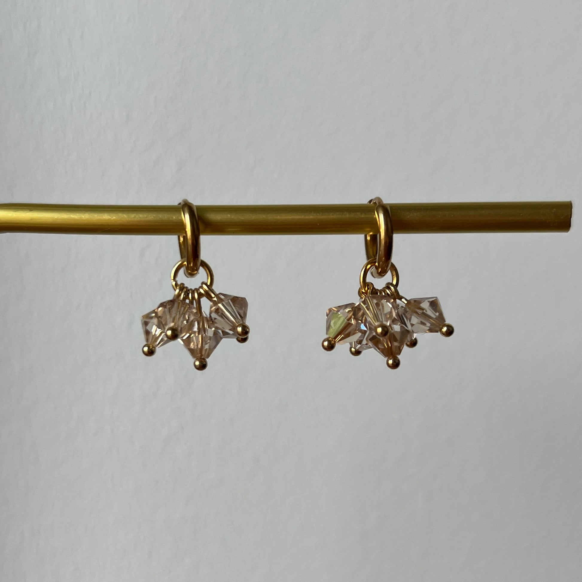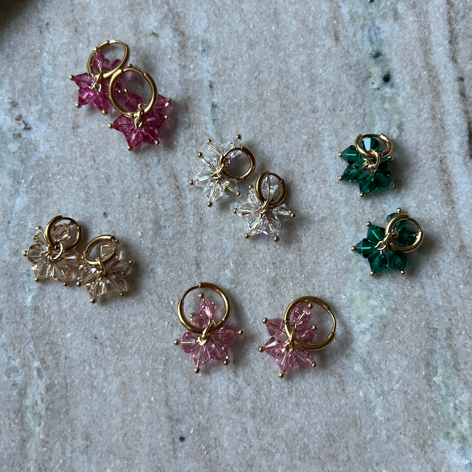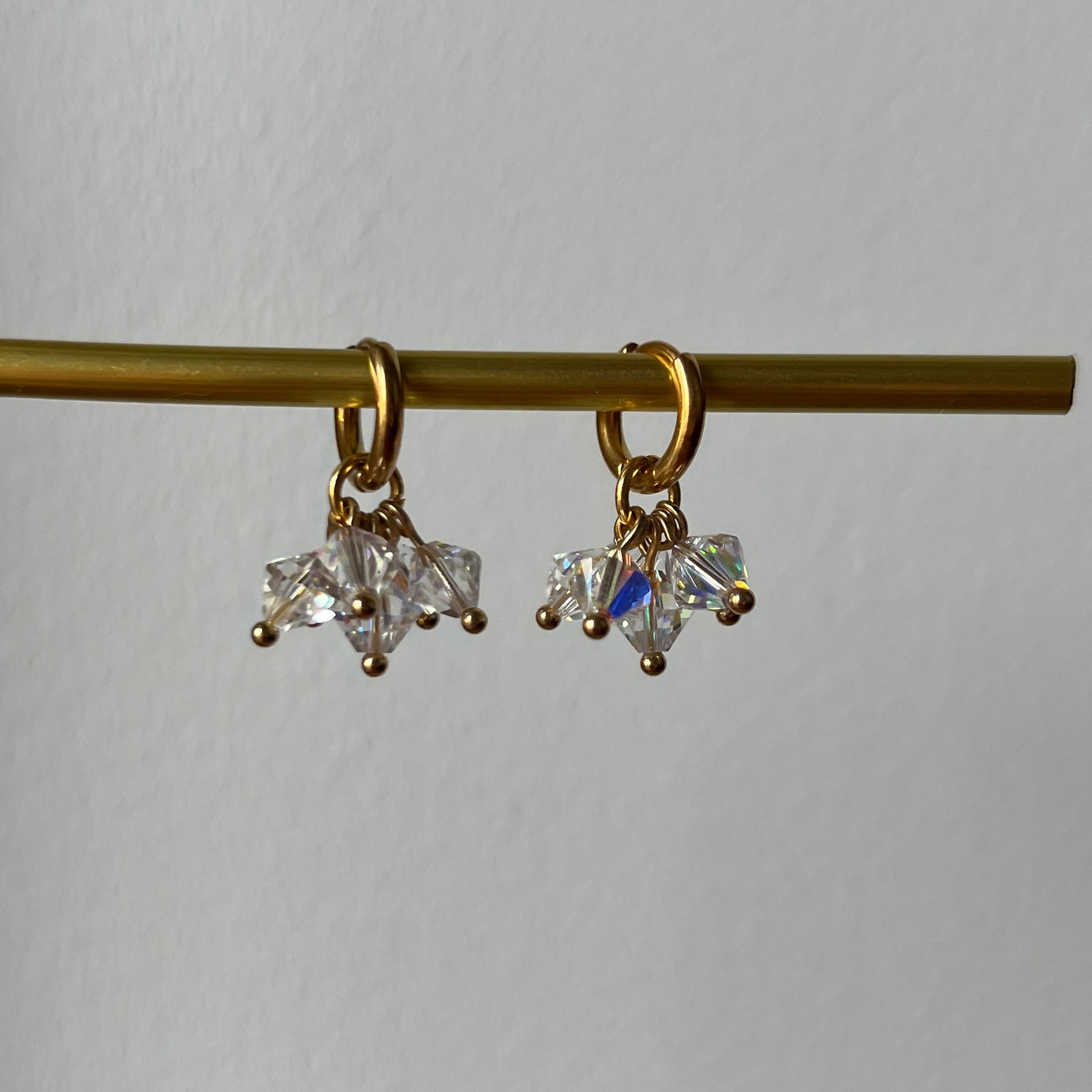 6 kristallia -korvakorut ovat nappivalinta, kun kaipaat näyttävyyttä ilman suurta kokoa. Niissä roikkuu kuusi säihkyvää kristallia, jotka taittavat valoa upeasti jokaisella liikkeellä.